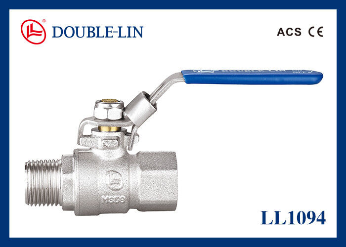 - Полный поток Мужчина x Женщина длинные нитки латунные замыкаемые шаровые клапаны с нержавеющей сталью плоской ручкой рычага.